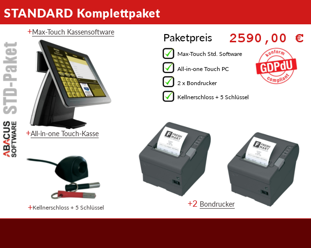Kassensysteme- Top 5 Angebote für Gastronomie Kassensysteme, Kassensoftware, Kassensystem, Kasse, Kassen, Kassen Software, Pronto, Ticket, Ticket Software, Kassensysteme Gastronomie, Kassensysteme Einzelhandel, Handel, Einzelhandel, Filialisierung, Filialmanagment-Systeme, Hotelsoftware, Kassensysteme Hotel, Kassensyste-App Android, Scanner, Skin, Tischplan, Party service, Service-Wartungsvertrag Abacus- Online Shop Kontakt bitte mit uns Abacus Software Lindemannstr. 23 D-40237 Düsseldorf Tel : +49 (211) 178 06 391 Fax: +49 (211) 178 07 589 Klick hier