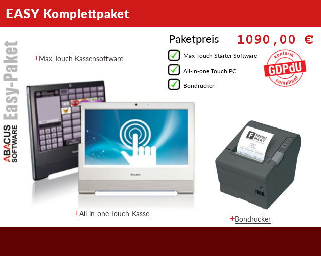 Kassensytem-Komplettpaket für Einzelhandel Kassensysteme- Top 5 Angebote für Einzelhandel Kassensysteme, Kassensoftware, Kassensystem, Kasse, Kassen, Kassen Software, Pronto, Ticket, Ticket Software, Kassensysteme Gastronomie, Kassensysteme Einzelhandel, Handel, Einzelhandel, Filialisierung, Filialmanagment-Systeme, Hotelsoftware, Kassensysteme Hotel, Kassensyste-App Android, Scanner, Skin, Tischplan, Party service, Service-Wartungsvertrag Abacus- Online Shop Kontakt bitte mit uns Abacus Software Lindemannstr. 23 D-40237 Düsseldorf Tel : +49 (211) 178 06 391 Fax: +49 (211) 178 07 589